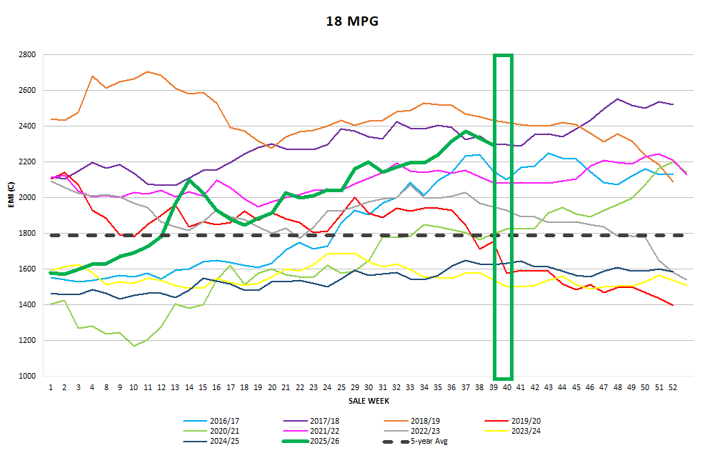 Next week’s offering falls back slightly to 37,815 bales. Early indications suggest an unconvincing “not much change.”