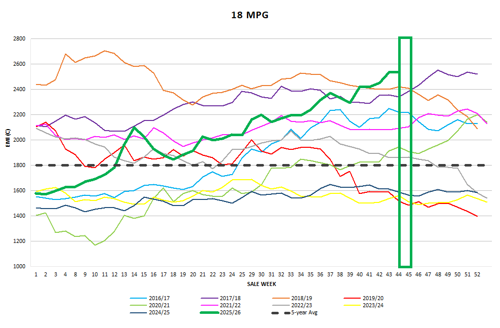 The Wool production forecast Committee released its forecast for 26/27 season today predicting production of 243.9mkg, down 4.5% from the 2025/26. Year-on-year, the EMI now sits 53.8% higher in AUD terms and 74% higher in USD, underlining the depth of demand supporting the market.