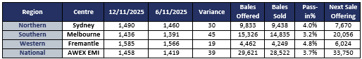 The AUD/USD exchange rate remained relatively stable over the selling week, resulting in a 16c rise in the EMI in USD terms, now sitting at 951usc. Buying interest largely came from the Australian trading exporters, large Chinese indents, and top makers, with competition intensifying as the week progressed.