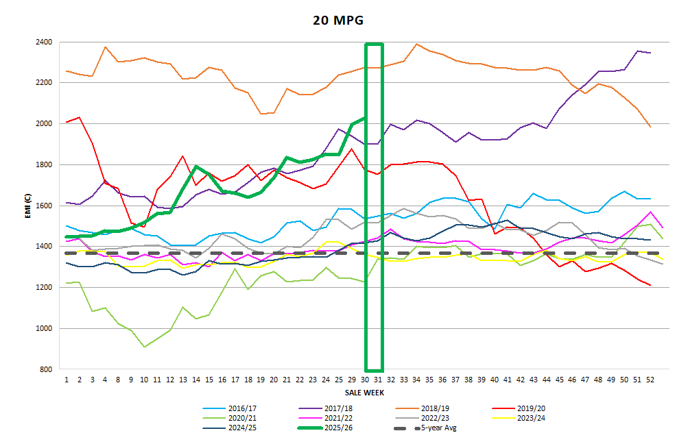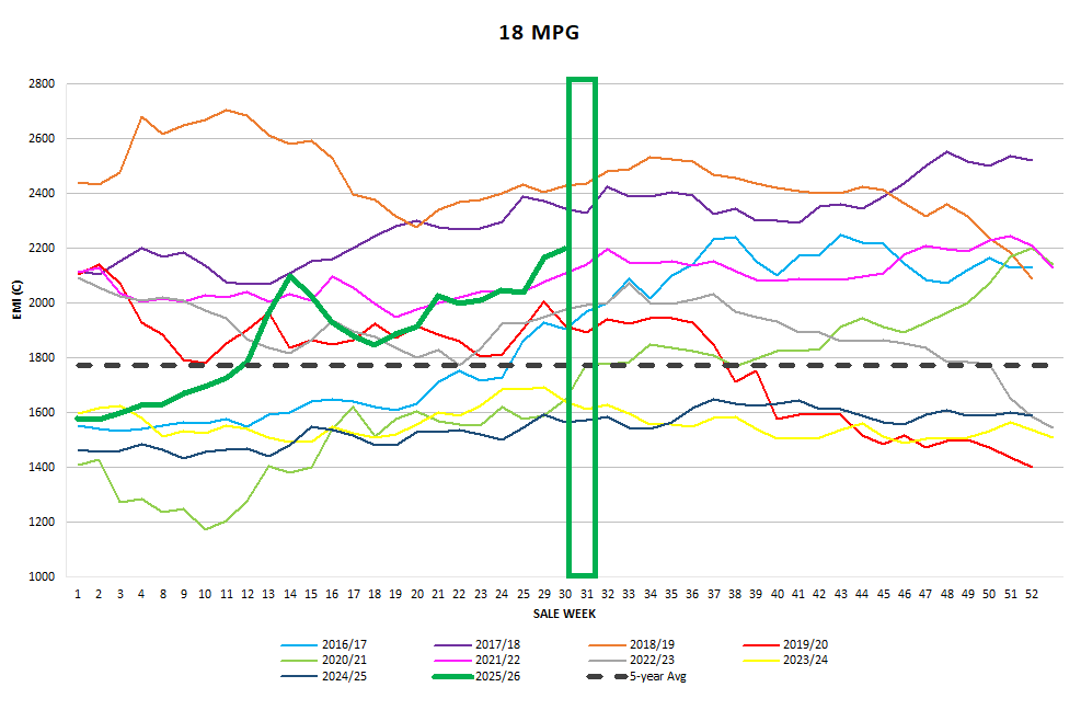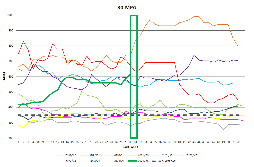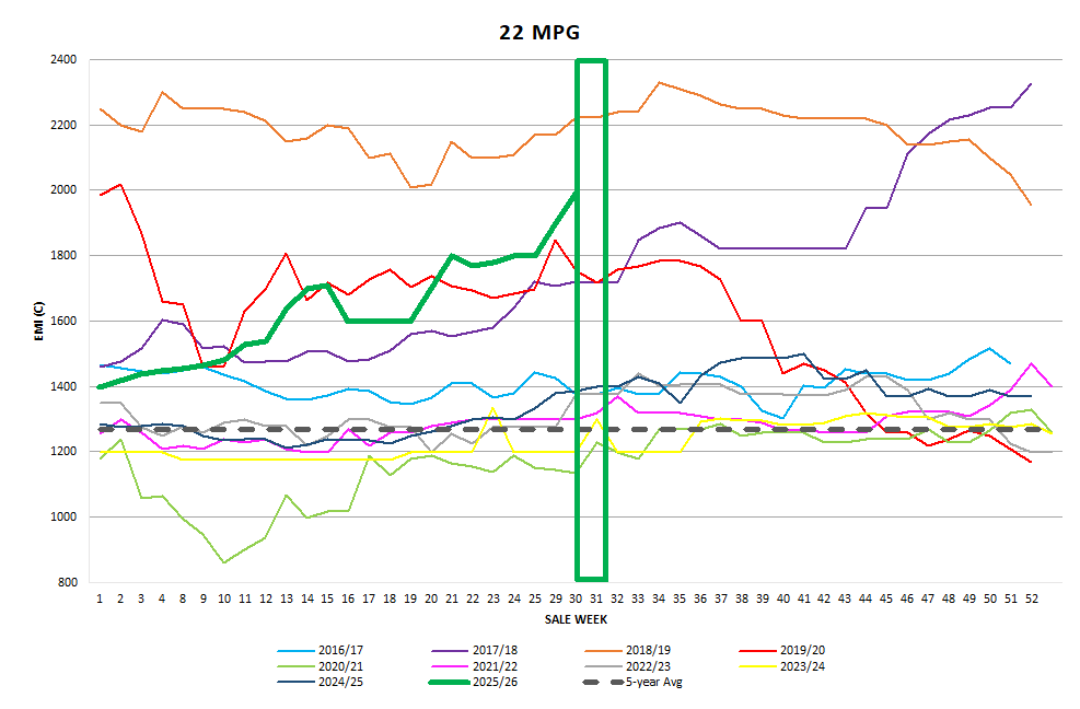 Once again, the pre-sale market intelligence was easily exceeded on the first day. The EMI increased by 35c on Tuesday as exporters clearly had orders for prompt shipping to complete. Whilst the bidding was aggressive, emotional and at time frenetic, the results were more than pleasing for sellers. Wednesday’s emotions moderated and felt more business-like, delivering a solid 6c rise giving exporters some time to breathe, and take account of their purchase positions.