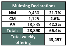 Crossbred combing types were also in keen demand posting the largest MPG rises in percentage terms adding 27-46c across the 25-32 North and Southern MPG’s. The gains were all recorded on the first day, with 28µ rising by 43c, an increase of 6.3%. The 30 MPG added 37, up 6.2%. Impressive increases when considering the 28 & 30 MPGs have increased by 77.6% and 78.4% respectively from the corresponding sale of last year.