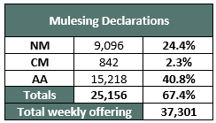 Crossbreds were quoted slightly cheaper however the quotes reflected the lower numbers of the deficiencies in style and specifications rather than a market movement. The exporters are conveying a fully firm market in this sector with 58% being purchased by the top 4 buyers.