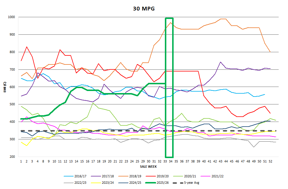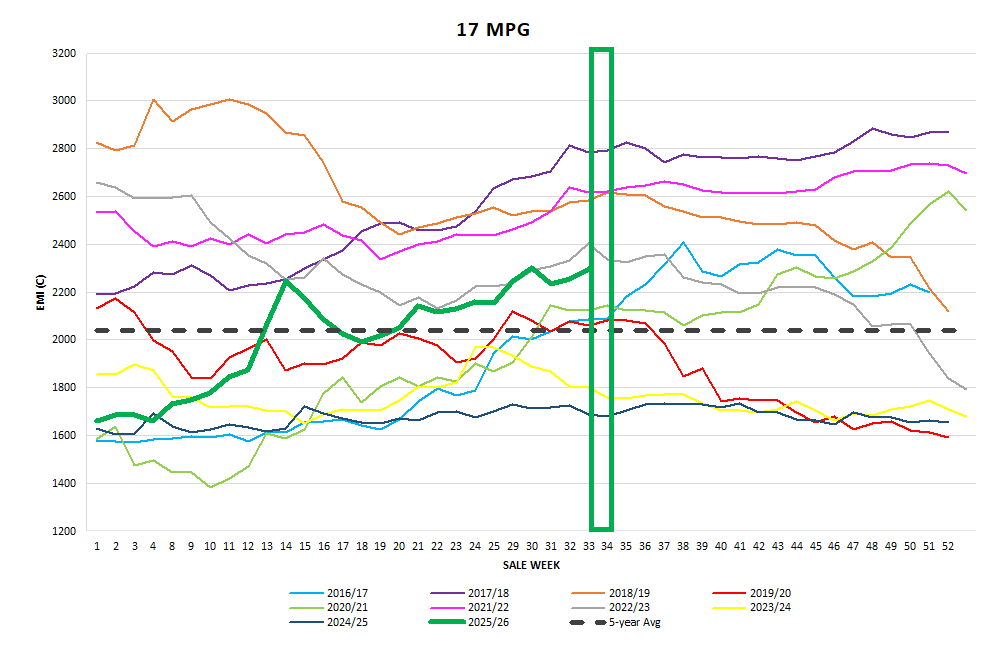 The finer end of the XB Cardings were also moderately dearer than the previous week.