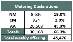 Next week, the national offering falls back to 42,953 bales, with all centres offering on Tuesday and Wednesday. Market intelligence suggests a levelling off of price rises for a week or two. Year on year, the value of wool is up 62% in USD terms, so we are hearing mumbles of some temporary credit stress. ~Marty Moses