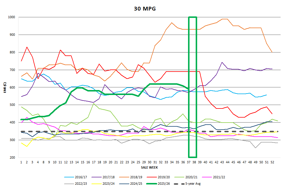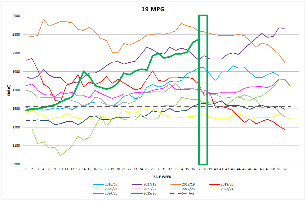 The AWEX EMI closed the week at 1783c, up 16c at auction sales in Australia. Combating the appreciating AUD vs USD exchange rate, the EMI rose 35c in USD terms. This shone a very positive light on the market, despite early market intel predicting a flat market at best.