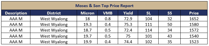 Moses & Son is committed to providing our valued customers the most current information and data to empower your decision-making process. Discover our latest Australian wool market weekly update below, along with archived reports for your perusal and analysis.