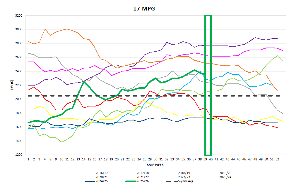 Next week’s offering falls back slightly to 37,815 bales. Early indications suggest an unconvincing “not much change.”