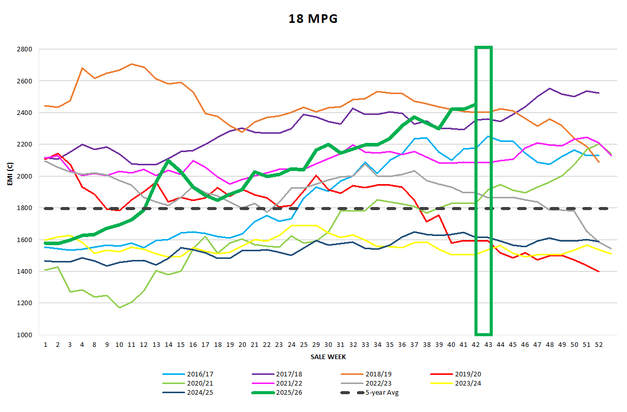 The AWEX EMI closed on 1825, up 39c at auction sales this week in Australia. 97.4% of the 44,765-bale offering cleared to the trade, in what was a display of bullish sale room activity.