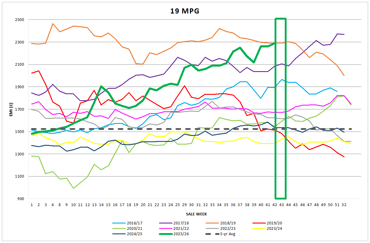 Merino Fleece led the market trend from the first lot. The MPG’s ranged from +22c to +57c in the northern region. Notably the northern region 19mpg rose to 2315c on Tuesday over 60c above Melbourne and Fremantle’s 19 MPG. Whilst there was a slight correction on Wednesday on this premium, the end result was still a 30c premium for the 19 MPG over Melbourne. Wednesday’s market flew in the face of the stronger AUD which may have clipped the markets true strength.